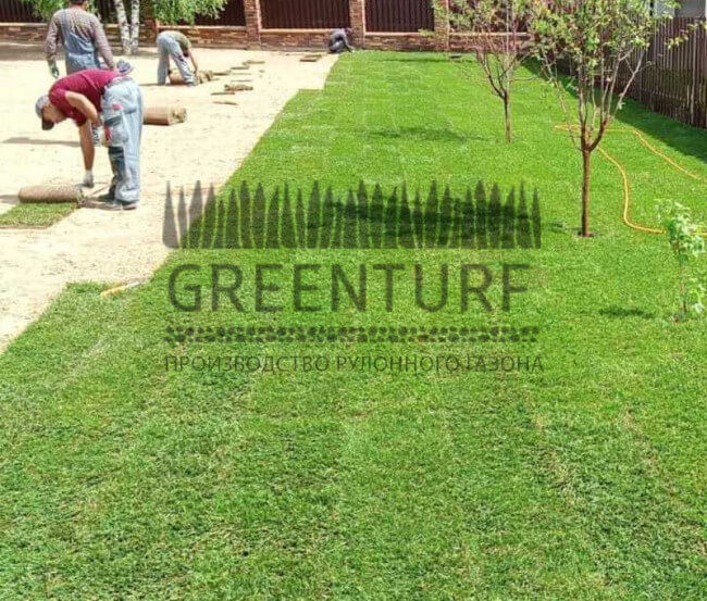 Внешний вид такого покрытия не уступает партерному газону. Упругий и ровный дёрн насыщенного изумрудного оттенка оценят даже самые требовательные клиенты.